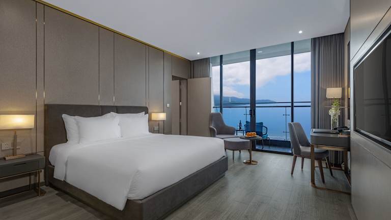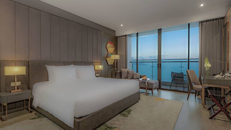 Die Zimmer sind mit Klimaanlage ausgestattet und bieten einen Balkon oder eine Terrasse mit Blick auf den Strand. Jedes Zimmer verfügt über ein Doppelbett, ein Queensize-Bett oder ein Kingsize-Bett, sowie eine Minibar, einen Schreibtisch, ein TV-Gerät mit Satelliten-/Kabelempfang und WiFi (ohne Gebühr). Die Badezimmer sind ausgestattet mit einer Dusche, einem Haartrockner und Bademänteln. Familien- und Nichtraucherzimmer sind ebenfalls verfügbar.