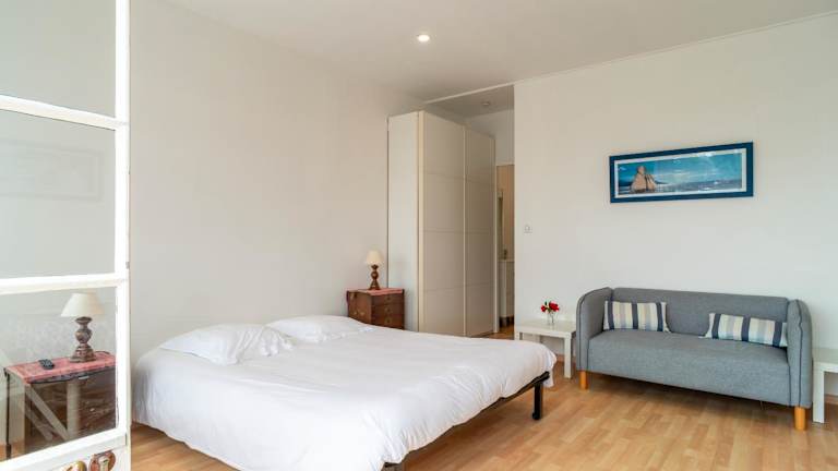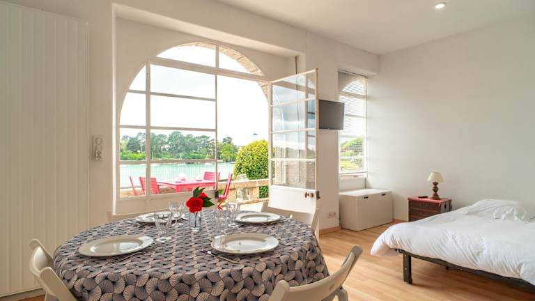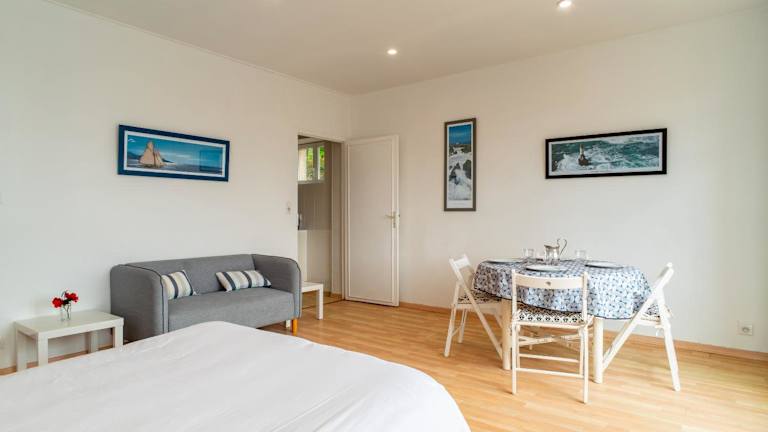 Die Unterkunft befindet sich in Bénodet, etwa 17 km vom Bahnhof Quimper entfernt. Die Lage bietet einen Blick auf das Meer sowie Zugang zu einem Garten. Die Umgebung inkludiert kulturelle Sehenswürdigkeiten wie das Musée Départemental Breton und das Cornouaille Theatre.