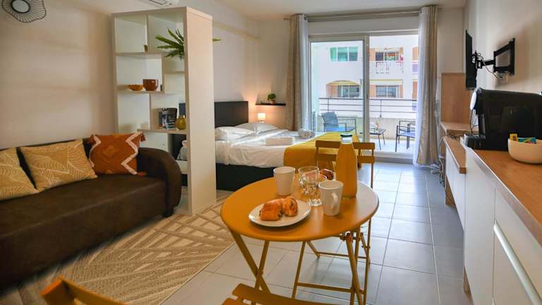 LE STELLA MARINE Studio für 2 bietet eine rund um die Uhr besetzte Rezeption sowie eine Terrasse. Die Unterkunft ist klimatisiert und stellt den Gästen einen Privatparkplatz zur Verfügung. Die Umgebung wird durch ihr Strandangebot und die Nähe zu kulturellen Sehenswürdigkeiten wie dem Palais des Festivals et des Congrès, der 9,1 km von der Unterkunft entfernt ist, geprägt.