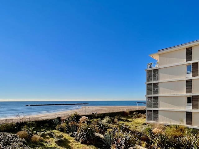 Le Sunlight - T2 bord de mer, Parking bietet eine haustierfreundliche Ferienwohnung direkt am Strand mit einem Balkon und schönem Meerblick. Es stehen den Gästen kostenloser Privatparkplatz sowie kostenfreies Wifi zur Verfügung. Die Unterkunft eignet sich besonders für erholsame Ferien am Meer.