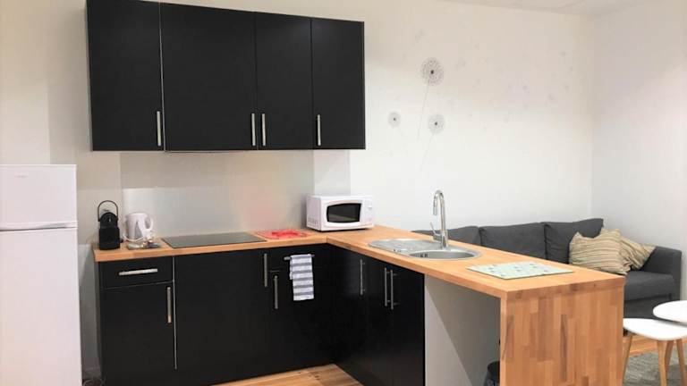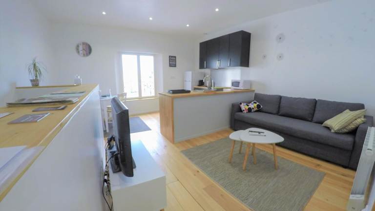 Das Apartment im Le T2 moderne des Palmiers au coeur de Moissac bietet Ihnen alles, was Sie für einen angenehmen Aufenthalt benötigen. Die voll ausgestattete Küche ermöglicht es Ihnen, Ihre eigenen Mahlzeiten zuzubereiten und den Komfort eines eigenen Zuhauses zu genießen. Das Schlafzimmer bietet eine gemütliche und entspannte Atmosphäre für eine erholsame Nachtruhe. Im modernen Badezimmer finden Sie kostenfreie Pflegeprodukte für Ihren Komfort. Im Wohnzimmer können Sie sich vor dem Flachbild-TV entspannen und die Aussicht auf die Stadt genießen.