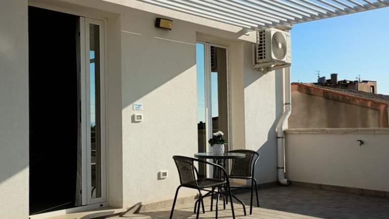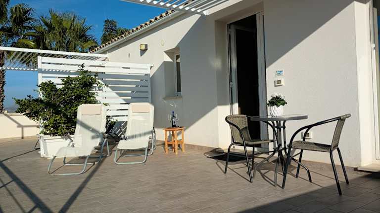 Die Unterkunft Le terrazze sul sale-Monolocale 1 & Monolocale 2 White Gold Apartaments & 2 White Gold Apartaments bietet Übernachtungsmöglichkeiten mit kostenlosem Wifi, Klimaanlage sowie Zugang zu einem Garten mit einer Terrasse.