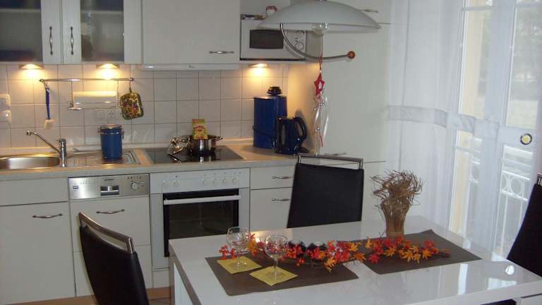 Die Ferienwohnung ist mit zwei Schlafzimmern, einer voll ausgestatteten Küche mit Kühlschrank und Geschirrspüler und einem Badezimmer mit Dusche und Haartrockner versehen. Handtücher und Bettwäsche können gegen Aufpreis bereitgestellt werden.