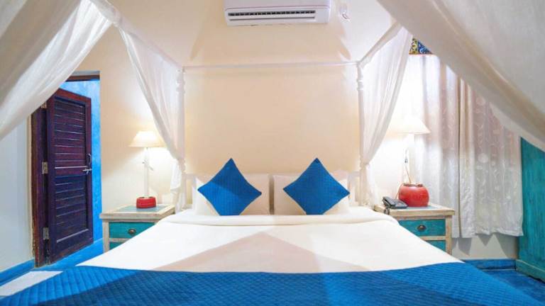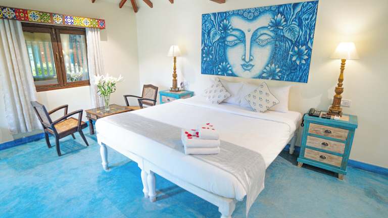 Das Hotel Leela Cottages in Morjim bietet einen entspannten und komfortablen Aufenthalt direkt am Strand. Mit seinen verschiedenen Restaurants, einem Wellnessbereich und einer 24-Stunden-Rezeption bietet das Hotel alle Annehmlichkeiten für einen erholsamen Urlaub.