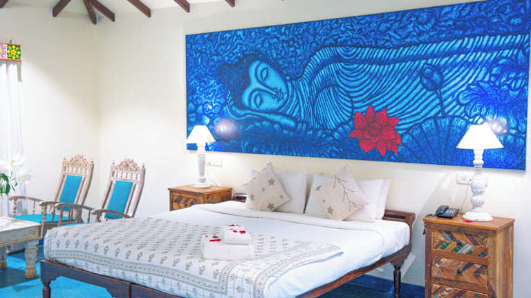 Das Hotel Leela Cottages befindet sich in Morjim, nur wenige Autominuten vom Mandrem Beach und dem Ashwem Beach entfernt. Die Lage direkt am Strand ermöglicht es den Gästen, die Schönheit der Küste zu genießen und sich in der Natur zu entspannen. Die Umgebung bietet auch die Möglichkeit für Aktivitäten wie Yoga-Kurse und Wanderungen.