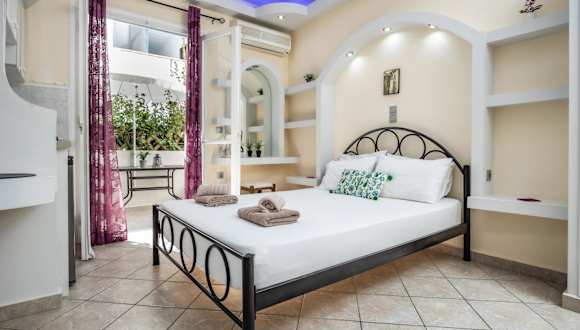 Die Unterkunft Lefkes Studios befindet sich 200 m vom Strand Agios Georgios entfernt. In der Nähe befinden sich interessante Sehenswürdigkeiten wie Portara, Kastro Naxos und die Kirche Panagia Mirtidiotisa. Der Flughafen Naxos ist 2 km von der Unterkunft entfernt.