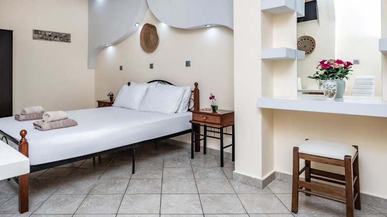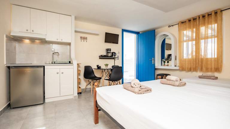 Lefkes Studios bietet eine Terrasse und Wohneinheiten mit einem Balkon. Die Unterkunft ist klimatisiert und ausgestattet mit einer voll ausgestatteten Küche, einem Flachbild-TV und einem eigenen Badezimmer mit Dusche.