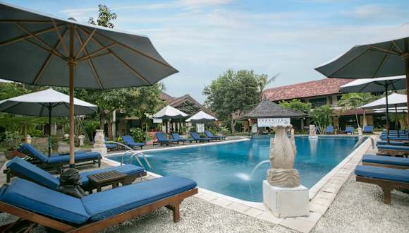 Das Hotel befindet sich an der Süd-Küste der Insel Bali, nur wenige Gehminuten vom Zentrum des Touristenortes Kuta entfernt. Zahlreiche Einkaufs- und Unterhaltungsmöglichkeiten, wie Boutiquen, Bars und Restaurants sind schnell und bequem zu Fuss erreichbar. Die kilometerlangen Sandstrände von Kuta erreicht man nach ca. 5 Minuten Fussweg. Den Flughafen Ngurah Rai erreicht man nach ungefähr 10 Autominuten. Zur Hauptstadt Denpasar benötigt man etwa 15 Minuten Fahrzeit.