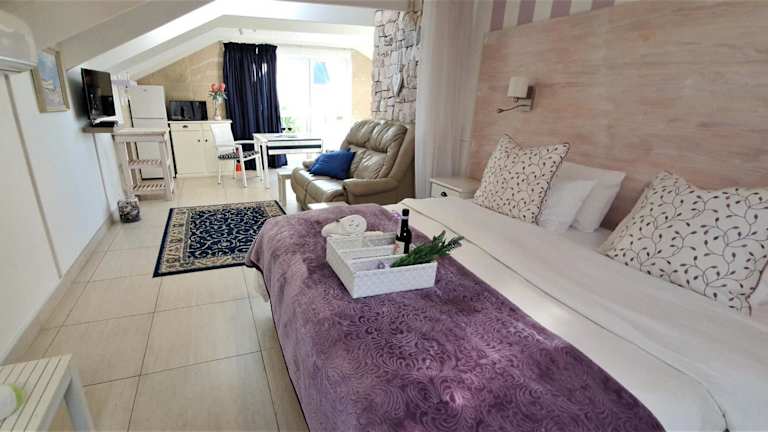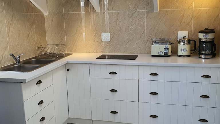 Die Ferienwohnung verfügt über ein Schlafzimmer, ein Badezimmer mit Dusche, eine gut ausgestattete Küche mit Kühlschrank und Mikrowelle sowie einen Flachbild-TV mit Satellitenkanälen. Handtücher und Bettwäsche sind vorhanden.