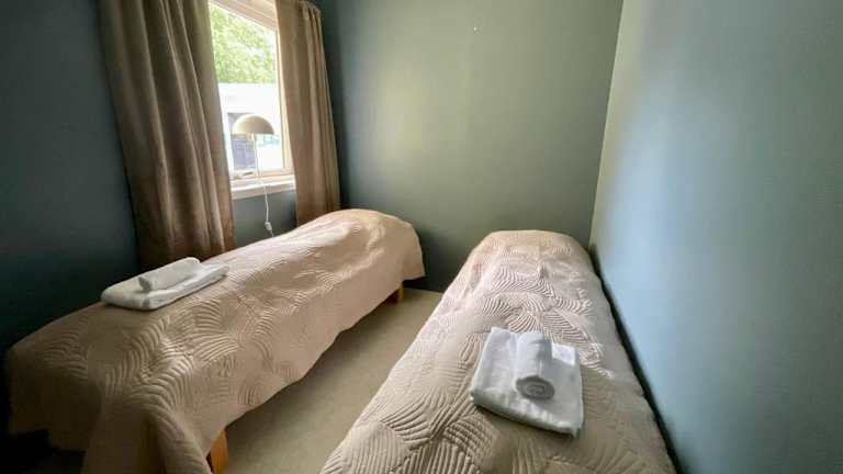 Die Ferienwohnung besteht aus 2 Schlafzimmern, einem Wohnzimmer sowie einer voll ausgestatteten Küche mit Kühlschrank und Wasserkocher. Das Badezimmer ist mit einer Dusche und einem Haartrockner ausgestattet. Handtücher und Bettwäsche werden bereitgestellt.