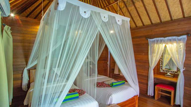 Die Cottages sind geräumig und klimatisiert. Jede Unterkunft verfügt über eine Minibar, einen Kleiderschrank und ein halboffenes Badezimmer mit einer Warm-/Kaltwasserdusche, Handtüchern sowie kostenfreien Pflegeprodukten. Die Regelungen zum Nichtrauchen sorgen für eine angenehme Atmosphäre.