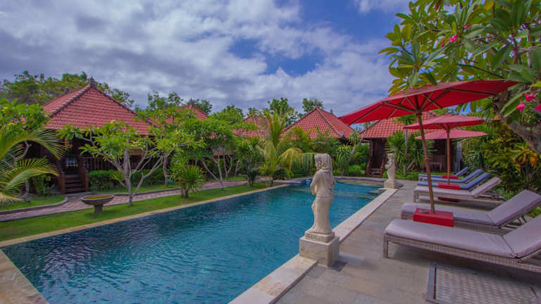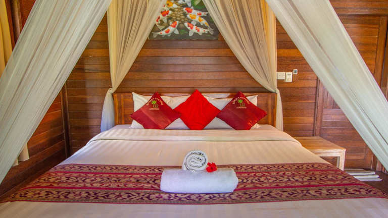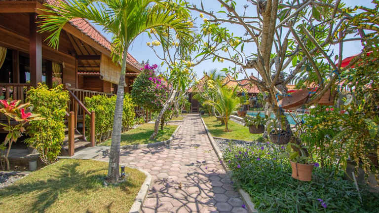 Das Lembongan Garden Cottage bietet eine heimelige Atmosphäre auf der Insel Lembongan. Die Unterkunft umfasst geräumige Cottages, die klimatisiert sind und eine Vielzahl von Annehmlichkeiten, wie eine Minibar und einen Kleiderschrank, bieten. Das halboffene Badezimmer ist modern ausgestattet und lädt zur Entspannung ein, während die Rezeption werktags von 08:00 bis 20:00 Uhr besetzt ist und den Gästen bei Fragen behilflich ist.