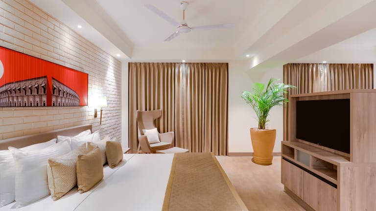 Die klimatisierten Zimmer sind mit einem Doppelbett, einem Queensize-Bett oder einem Kingsize-Bett ausgestattet. In den Zimmern befinden sich zudem ein Safe, eine Minibar, ein Schreibtisch sowie eine Tee-/Kaffeemaschine. Jedes Zimmer hat ein eigenes Badezimmer mit Dusche und Haartrockner. Zu den Annehmlichkeiten zählen auch ein Fernseher mit Satellitenempfang und kostenfreies WiFi. Die Unterkunft bietet auch rollstuhlgerechte Zimmer an.