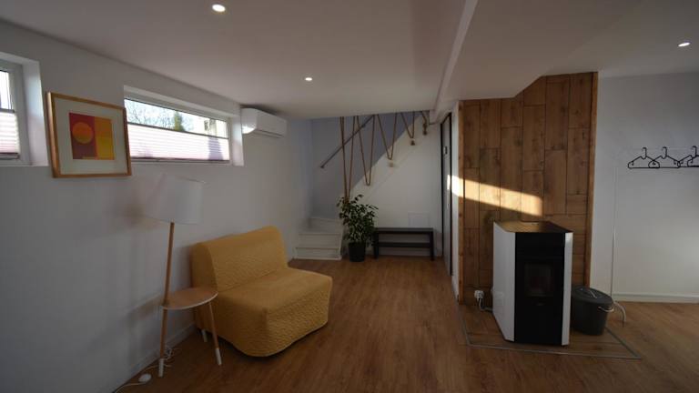 Die Unterkunft enthält eine voll ausgestattete Gemeinschaftsküche, die den Gästen die Möglichkeit bietet, ihre eigenen Mahlzeiten zuzubereiten. Zudem sind Grillmöglichkeiten vorhanden, um gemütliche Grillabende zu veranstalten.