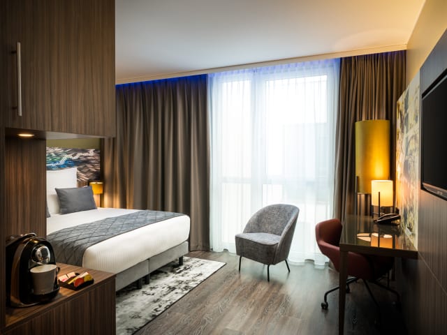 Die 134 modernen Zimmer sind mit Klimaanlage, Schreibtisch, Heizung, Safe, kostenlosem WLAN, Minikühlschrank, Espressomaschine, Flachbildfernseher und Telefon ausgestattet, die Badezimmer verfügen über Infrarot-Wärmestrahler, Haartrockner und Kosmetikspiegel sowie eine Regendusche.