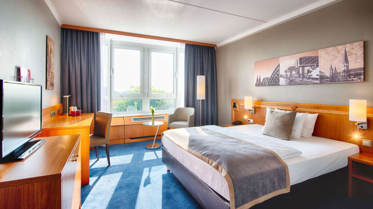 Neben 177 Zimmern, einem Restaurant und einer Bar verfügt das Leonardo Hotel Köln Bonn Airport über 7 Konferenzräume, 4 Boardrooms, eine Lobby mit drahtlosem Internetzugang (Wireless LAN) sowie 140 Parkplätze, direkt am Hotel gelegen. Für den Freizeitbereich steht Ihnen ein Mini Gym und im Sommer unser Biergarten zur Verfügung. Egal, ob Ihr Aufenthalt privater oder geschäftlicher Natur ist: unsere geräumigen, modern eingerichteten Zimmer bieten Ihnen viele Annehmlichkeiten in ansprechender Atmosphäre. Übrigens: Kinder bis 18 Jahre übernachten im Zimmer der Eltern kostenfrei, Haustiere sind gegen einen geringen Aufpreis in den Zimmern erlaubt.