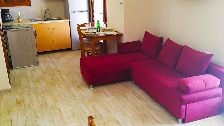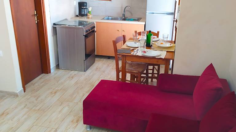 Die Unterkunft bietet ein Restaurant, das griechische Küche serviert. Auf Anfrage stehen auch glutenfreie Optionen zur Verfügung. Es sind Lunchpakete erhältlich und die Gäste können Guetzli oder andere Snacks für den kleinen Hunger zubereiten, da die Zimmer mit einer voll ausgestatteten Küche ausgestattet sind.