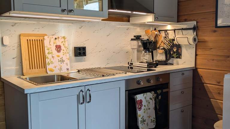 Das Chalet verfügt über ein Schlafzimmer sowie eine voll ausgestattete Küche mit Kühlschrank, Geschirrspüler und Kaffeemaschine. Handtücher und Bettwäsche werden zur Verfügung gestellt, sind jedoch nicht im Preis inbegriffen. Gäste können diese gegen einen Aufpreis mieten oder selbst mitbringen.