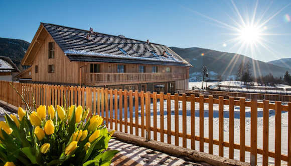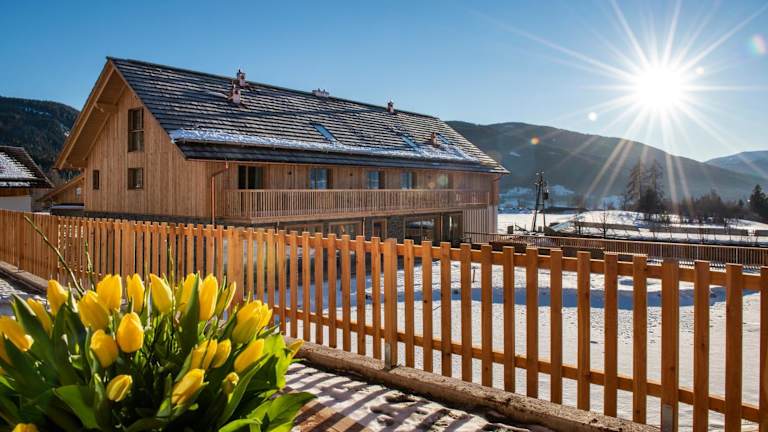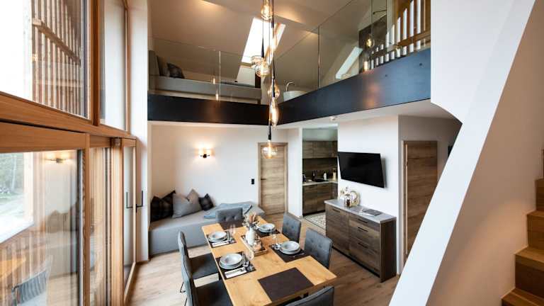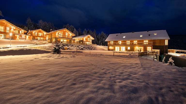 Die Architektur der Chalets vereint modernen Komfort mit urigem alpinen Flair. Die Anlage umfasst 17 Gebäude auf einer Fläche von 1,2 ha und bietet eine einzigartige Kombination aus Wohlergehen und naturnahem Erlebnis. Ein natürlicher Schwimmteich mit Terrasse lädt zum Baden und Entspannen ein. Ein Wellnessbereich mit Sauna und Massageanwendungen sorgt für Entspannung.