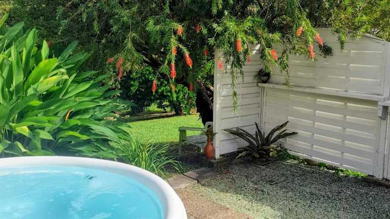 Les Bromélias chez Djo et Rosy ist eine einladende Ferienwohnung, die über kostenloses Wifi und einen Whirlpool verfügt. Gästen steht eine komfortable Klimaanlage zur Verfügung.