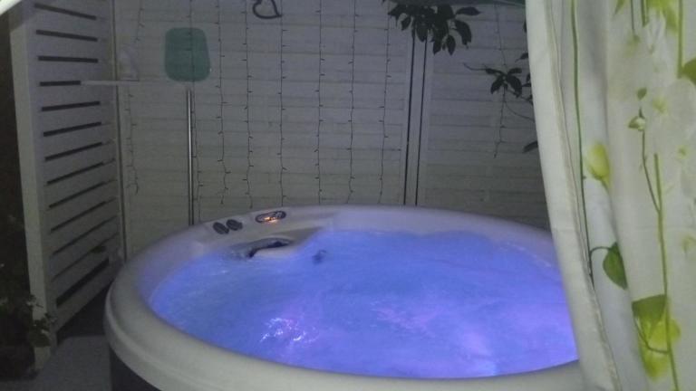 Die Ferienwohnung bietet ein heimeliges Ambiente mit einem Flachbild-TV, einem Sitzbereich und einer voll ausgestatteten Küche, die über einen Kühlschrank verfügt. Zudem sind eine Waschmaschine und ein Badezimmer mit Dusche und Whirlpool vorhanden.