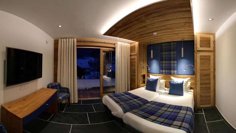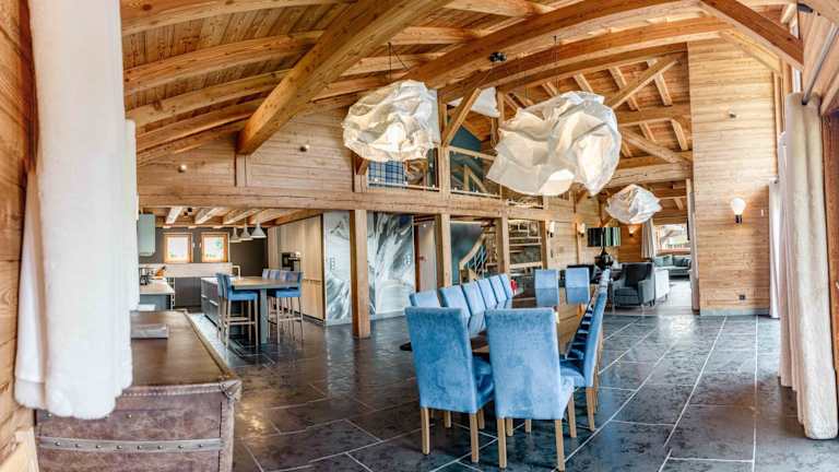 Das Frühstück und regionale Abendessen können direkt ins Chalet geliefert oder im Restaurant des Partnerhotels eingenommen werden. Im Haupthotel gibt es eine gemütliche Loungebar, die auch den Gästen der Chalets zur Verfügung steht.