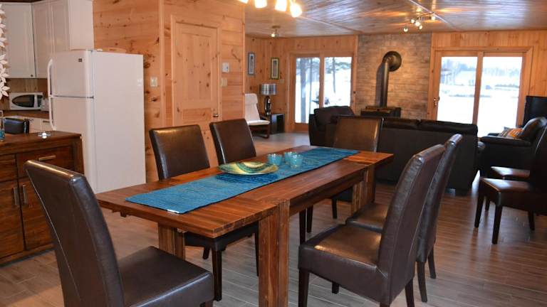 Die Unterkunft Les Chalets du Lac Serein (Milot) befindet sich in Saint Ludger de Milot, umgeben von einer malerischen Landschaft und bietet direkten Zugang zu einem eigenen Strandbereich. In der Nähe sind zahlreiche Möglichkeiten zum Wandern, Skifahren und Angeln gegeben.