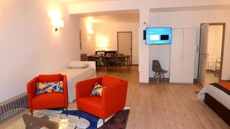 Das Les Chambres Panda bietet eine heimelige Atmosphäre mit individuell gestalteten Suiten im traditionellen französischen Stil. Geniessen Sie entspannte Momente auf der Terrasse im Blumengarten und nutzen Sie die kostenfreien WLAN-Angebote.