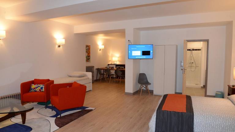 Die Suiten sind im traditionellen französischen Stil eingerichtet und verfügen über Einrichtungen wie einen TV. Jedes Zimmer hat ein eigenes Bad mit Badewanne oder Dusche. Eine der Suiten bietet zudem eine private Terrasse.