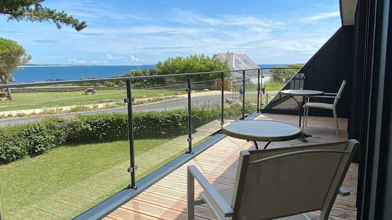 Les Chardonnerets - Maison contemporaine Vue Mer ist eine moderne Unterkunft mit direktem Meerblick. Die Ferienunterkunft bietet sowohl eine Terrasse als auch einen Balkon, um die Umgebung in vollen Zügen zu geniessen. Die gestaltete Unterkunft mit Garten bietet zudem kostenlose Privatparkplätze für Gäste.