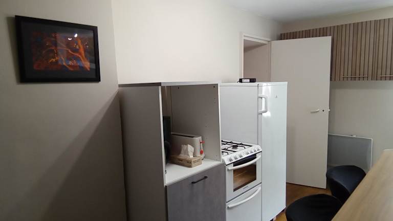 Das Ferienhaus umfasst 2 Schlafzimmer, ein Wohnzimmer und eine voll ausgestattete Küche mit einem Kühlschrank und einer Kaffeemaschine. Ein Badezimmer mit Dusche und Haartrockner ist ebenfalls vorhanden. Auf Wunsch sind Handtücher und Bettwäsche verfügbar.