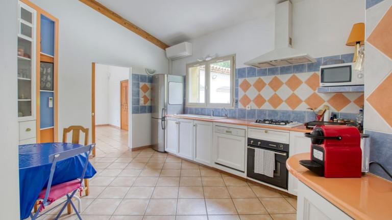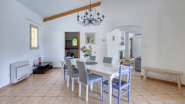 Das Ferienhaus ist klimatisiert und besteht aus 4 Schlafzimmern, einem Wohnzimmer und einer voll ausgestatteten Küche mit Kühlschrank und Kaffeemaschine. In den 3 Badezimmern befinden sich Dusche und Badewanne. Handtücher und Bettwäsche werden bereitgestellt.
