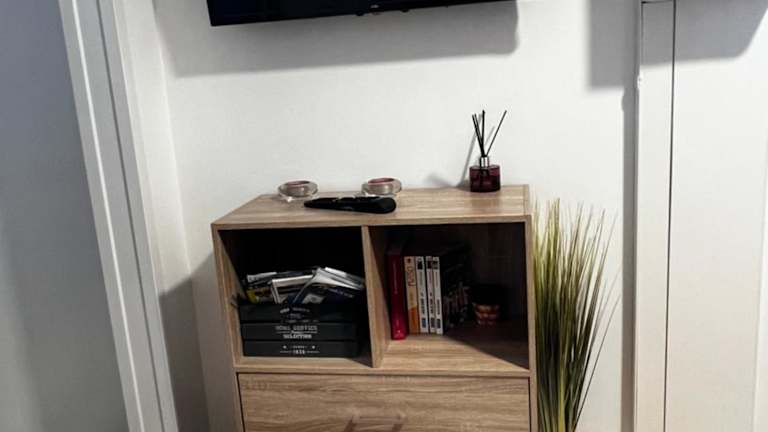 Die Unterkunft verfügt über eine voll ausgestattete Küche, die mit einem Kühlschrank, einer Mikrowelle, einer Herdplatte, einem Toaster, einer Kaffeemaschine und einem Wasserkocher ausgestattet ist, was den Gästen die Möglichkeit bietet, ihre eigenen Mahlzeiten zuzubereiten.