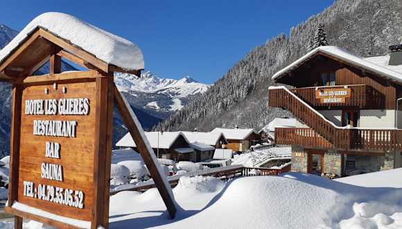 Das Hotel Les Glières befindet sich im Skigebiet Champagny-en-Vanoise, nur 3 Gehminuten vom nächsten Skilift entfernt, der eine Verbindung zu den Skigebieten La Plagne und Paradiski bietet. Courchevel liegt 38 Fahrminuten entfernt. Die Umgebung eignet sich hervorragend für Wintersport und weitere Freizeitaktivitäten.