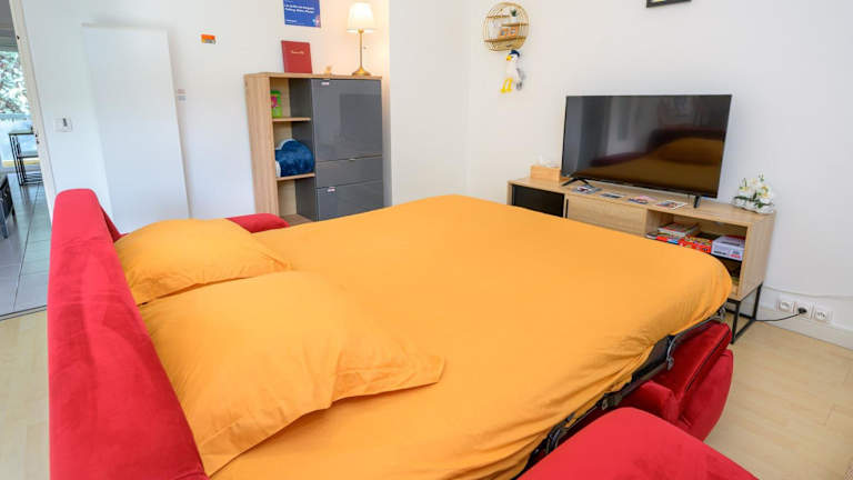 Die Ferienwohnung bietet einen eigenen Balkon mit Poolblick, 1 Schlafzimmer, ein Wohnzimmer, einen Flachbild-TV sowie eine gut ausgestattete Küche mit Kühlschrank und Ofen. Es gibt 1 Badezimmer mit Dusche, darüber hinaus werden Handtücher und Bettwäsche bereitgestellt. Allergikerfreundliche Zimmer sind ebenfalls verfügbar.