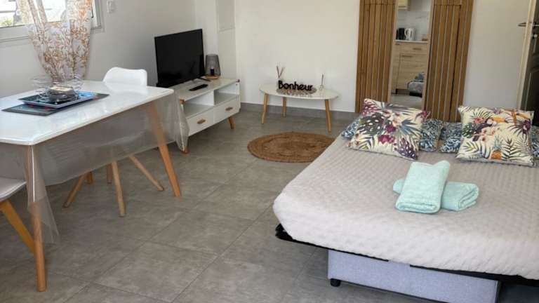 Die Zimmer in Les jardins de Saint Pancrace sind mit Klimaanlage ausgestattet und beinhalten eine voll ausgestattete Küche mit einem Essbereich. Es gibt einen Flachbild-TV sowie ein eigenes Badezimmer mit Dusche und Haartrockner. Zur Küchenausstattung gehören Kühlschrank, Ofen, Mikrowelle und Kaffeemaschine.