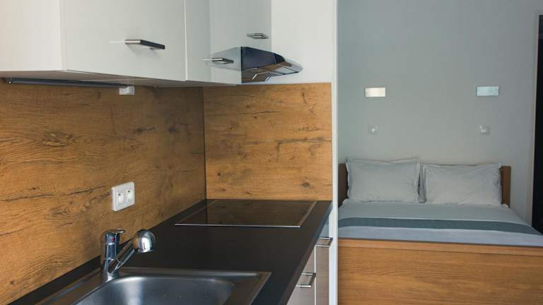 Die Ferienwohnung verfügt über 1 Schlafzimmer, eine Küchenzeile mit Kühlschrank und Geschirrspüler, sowie 1 Badezimmer mit Dusche, Haartrockner und Waschmaschine. Handtücher und Bettwäsche werden bereitgestellt.