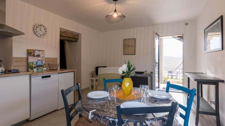 Die Ferienwohnung bietet 1 Schlafzimmer, ein Wohnzimmer und ein Badezimmer mit Dusche. Zur Ausstattung gehört ein Flachbild-TV sowie eine gut ausgestattete Küche mit Kühlschrank und Geschirrspüler. Eine Terrasse mit Bergblick ergänzt das Angebot.