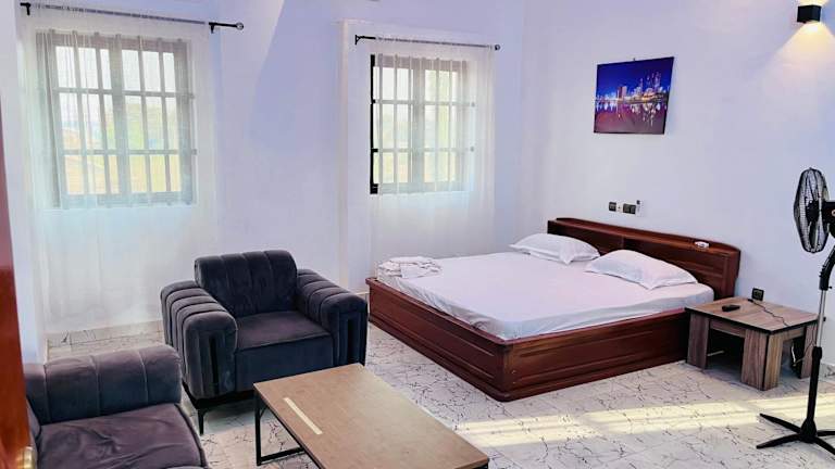Die Unterkunft Les Résidences Terre Royale befindet sich in Sokouhoué, in der Nähe des Flughafens Cadjehoun, welcher 137 km entfernt ist.