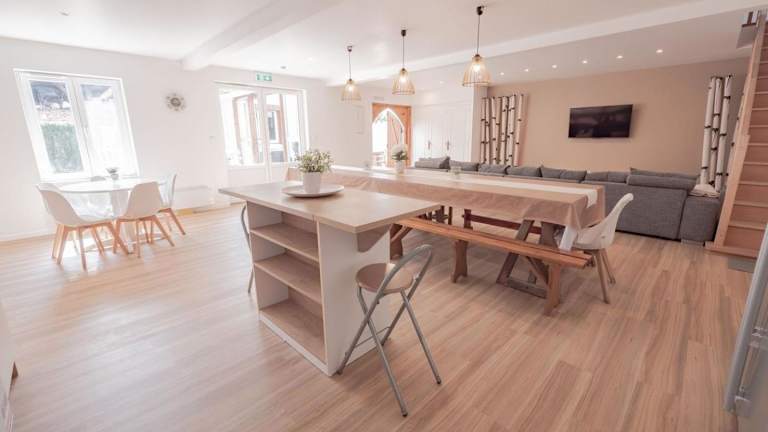 Die Ferienwohnung verfügt über insgesamt 5 Schlafzimmer, ein Wohnzimmer und eine voll ausgestattete Küche, die mit einem Kühlschrank und einer Kaffeemaschine ausgestattet ist. Des Weiteren gibt es 3 Badezimmer, die jeweils mit einer Dusche und einem Haartrockner ausgestattet sind. Die Unterkunft bietet zudem einen Fernseher.