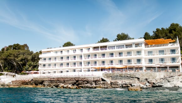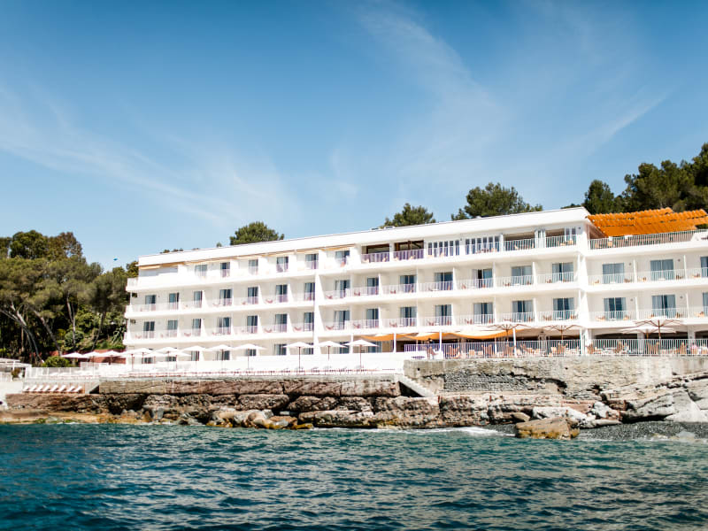Zwischen den ockerroten Felsen des Estérel und dem tiefblauen Meer wetteifert ein auffallend weißes, modernes Gebäude aus der Mitte des Jahrhunderts um Ihre Aufmerksamkeit, während Sie die Küste entlangschlängeln. Nichts anderes als Grün und Blau, es sei denn, man zählt den hohen Turm auf der geheimnisvollen Goldenen Insel, die so verlockend nah ist. Am Horizont üppige Pinien, ein Salzwasserpool und das herrliche Mittelmeer, das von den Zimmern, Restaurants, dem Spa, der Schwimmbahn auf dem Dach und der provenzalischen Macchia nie aus den Augen gelassen wird. Wohin der Blick auch schweift, der Charme der Côte d'Azur - im Breitwandformat.