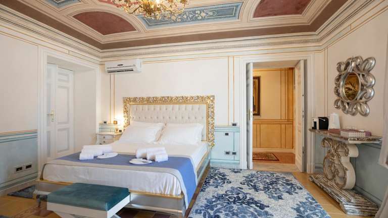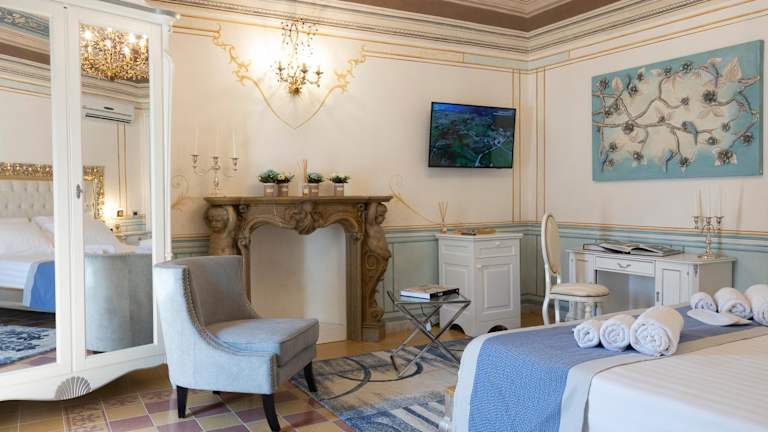 Die Zimmer in der Unterkunft Les Suite Royales sind klimatisiert und verfügen über einen Schreibtisch, eine Kaffeemaschine, eine Minibar, einen Safe, einen Flachbild-TV und ein eigenes Badezimmer mit einem Bidet. Ausgewählte Zimmer bieten zusätzlich einen Balkon und Stadtblick. Für die Bequemlichkeit der Gäste sind alle Zimmer mit Bettwäsche und Handtüchern ausgestattet.