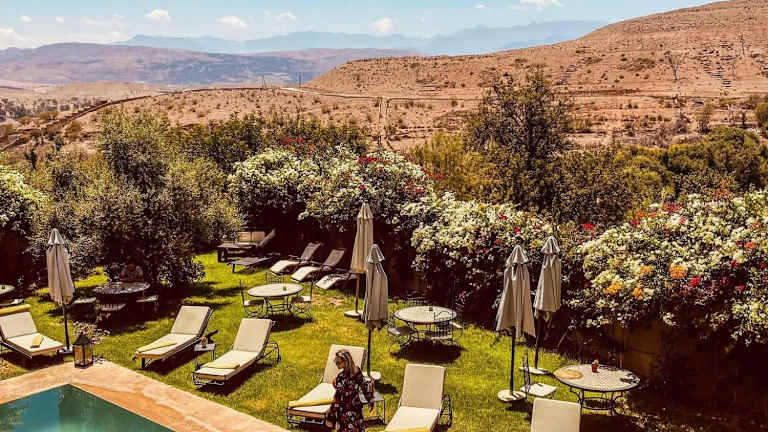 Das Hotel befindet sich in Lalla Takerkoust, etwa 35 km von Marrakesch entfernt. Im Umkreis sind Aktivitäten wie Reiten, Velofahren und Angeln möglich. Die Umgebung bietet reizvolle Ausblicke auf die Berge und den See.