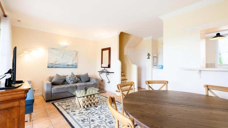 Die Ferienwohnung bietet eine helle und freundliche Atmosphäre mit einem Wohnzimmer und zwei Schlafzimmern. Eine voll ausgestattete Küche steht zur Verfügung, um die Bequemlichkeit der Gäste während ihres Aufenthalts zu maximieren. Zudem gibt es einen Fernseher.