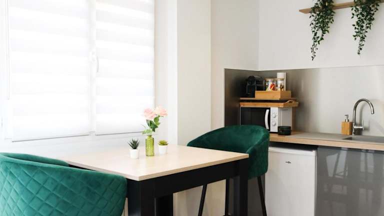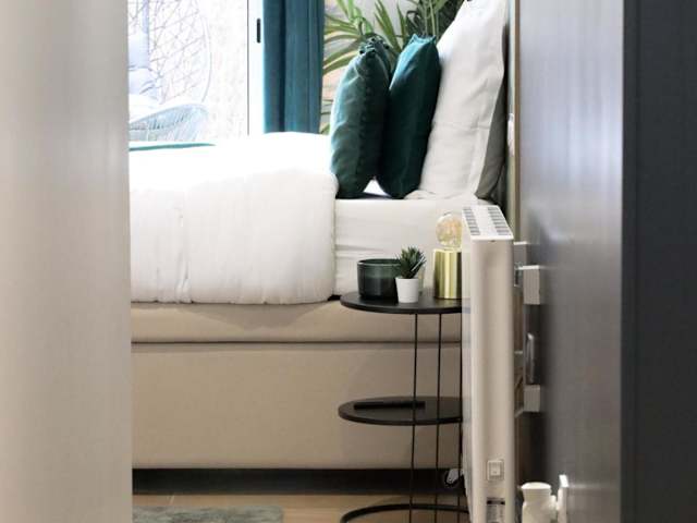 Die Ferienwohnung besteht aus einem Schlafzimmer, einem Wohnzimmer und einer voll ausgestatteten Küche mit Kühlschrank und Kaffeemaschine. Es stehen ein Badezimmer mit Dusche und Whirlpool sowie Bettwäsche und Handtücher zur Verfügung. Klimaanlage und Heizung sorgen für Bequemlichkeit.