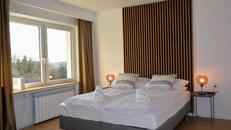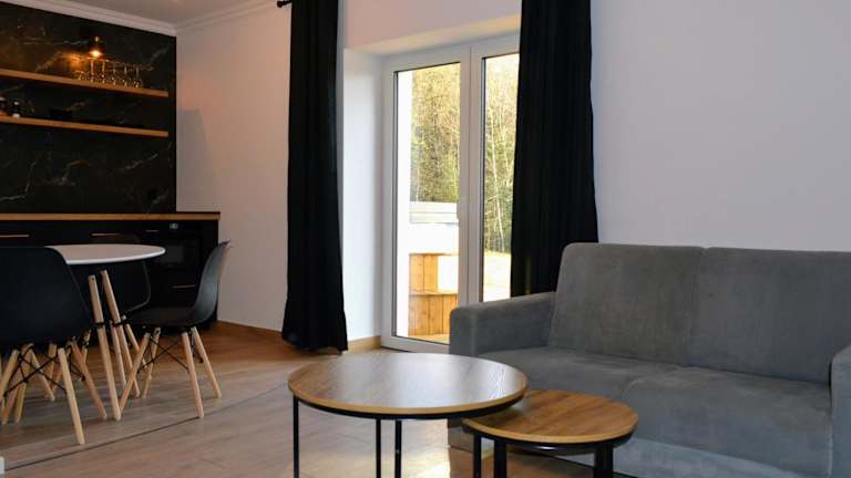 Leśna Muzyka Apartment Limanowa bietet Übernachtungsmöglichkeiten mit Zugang zu einem Whirlpool, einem Garten und einer Terrasse. Zudem steht ein kostenloser Privatparkplatz zur Verfügung.