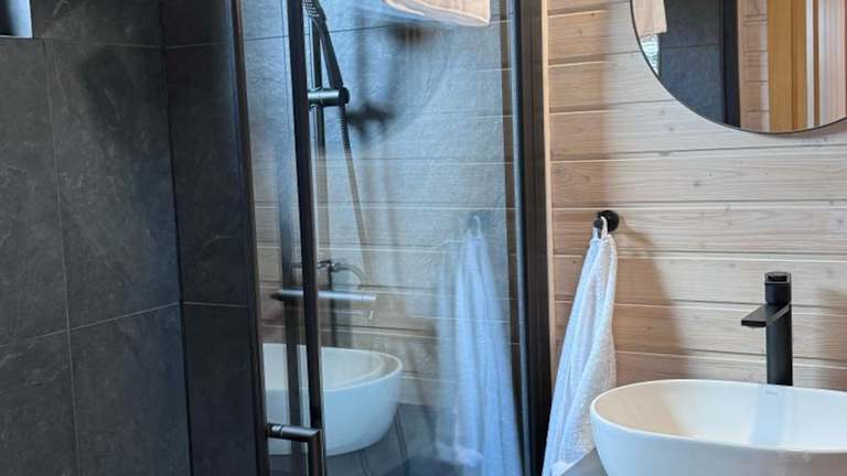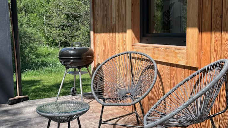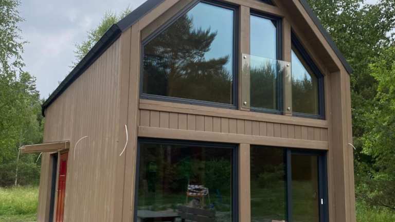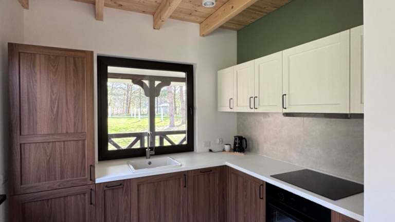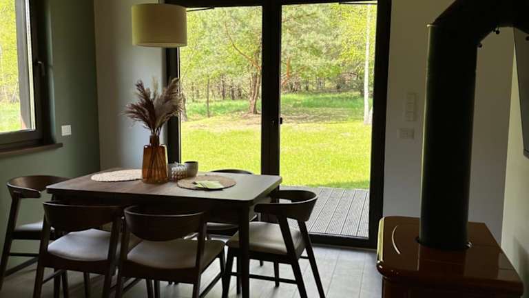 Die Leśna Osada na Kaszubach bietet komfortable, dreidimensionale Holzunterkünfte zur Miete. Sie ist umgeben von einem Garten mit Terrasse, ideal für erholsame Ferien in der Natur.