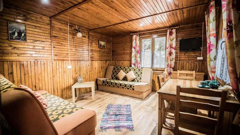 Leśna Ryba umfasst Bungalows und Chalets, die in warmen Farben gestaltet sind und mit Holzmöbeln ausgestattet sind. Die Unterkünfte bieten einen Sitzbereich und ein eigenes Bad. Die Gäste können sich auf eine heimelige Atmosphäre freuen.