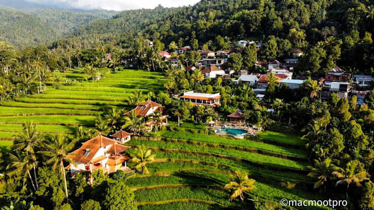 Das Lesong Hotel und Restaurant liegt inmitten eines Reisfeldes bei Munduk, 10 Fahrminuten vom Ort Munduk entfernt. Alternativ erreichen Sie Munduk auch nach einem 2 km langen Fussweg durch die Reisfelder. Der See Tamblingan befindet sich 20 Fahrminuten entfernt, während der botanische Garten in Bedugul und der See Beratan in 30 Autominuten erreichbar sind. Vom internationalen Flughafen Denpasar hat man eine Distanz von 54 km.