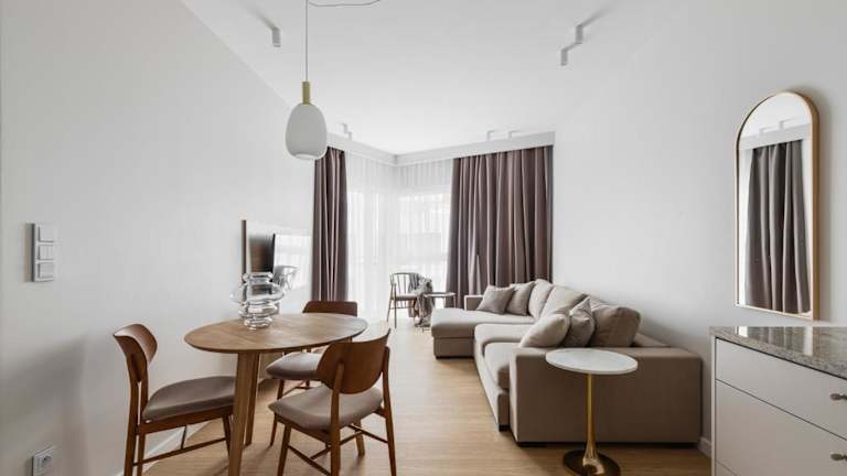 LET'S SEA - 4 Person - Premium Baltic Apartment with Sea View bietet eine heimelige Atmosphäre mit Gartenblick. Die Unterkunft verfügt über Übernachtungsmöglichkeiten mit einem Balkon sowie einer Kaffeemaschine und beinhaltet eine Terrasse mit Meerblick.
